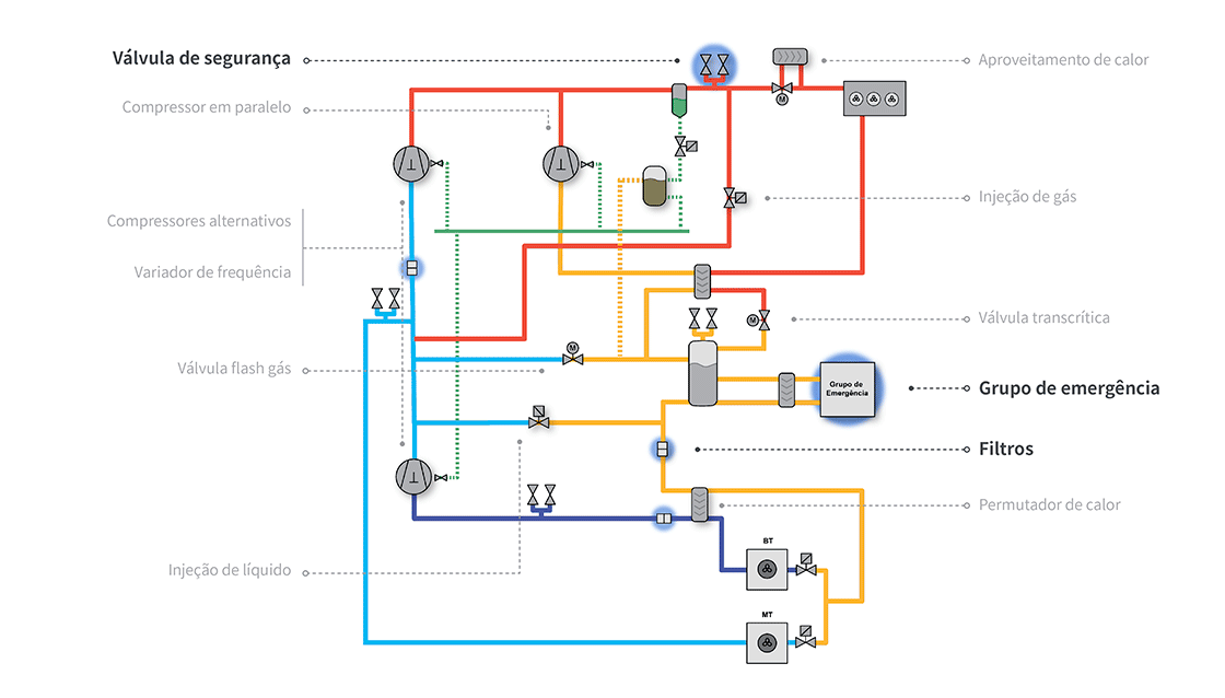 • Em caso de falha de energia no local, o gerador garante a operação do grupo de emergência, evitando a libertação de CO2 nos momentos de paragem.